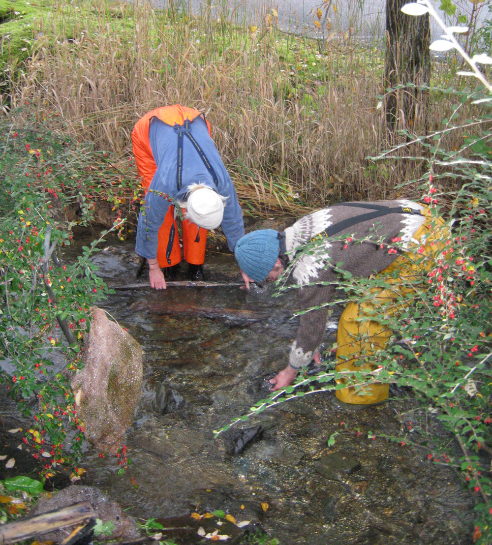So to make it a little more manageable we’re rinsing off most of the slime and gunk before we start peeling the inner layer of the bark off to harvest the fibres that will eventually be turned into rope.