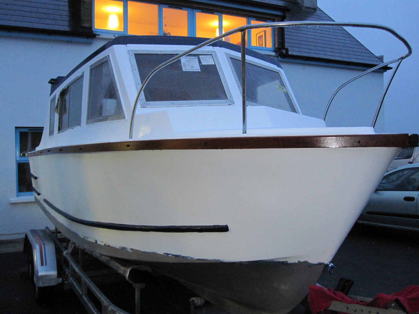 Well progress continues on the restoration of a river cruiser that’s in the yard at the moment. Most of the progress is not very visible but you will notice that the boat now has a rubrail. This needed a little bit of jiggery pokery to get it to wrap around the bulbous bow but it should look good once I shape the laminations to the final form. I’ve to trim the plugs and do some paint touch-ups. I can always know that I’m close to the end of a project when the list of things to do perversely starts getting longer and longer.