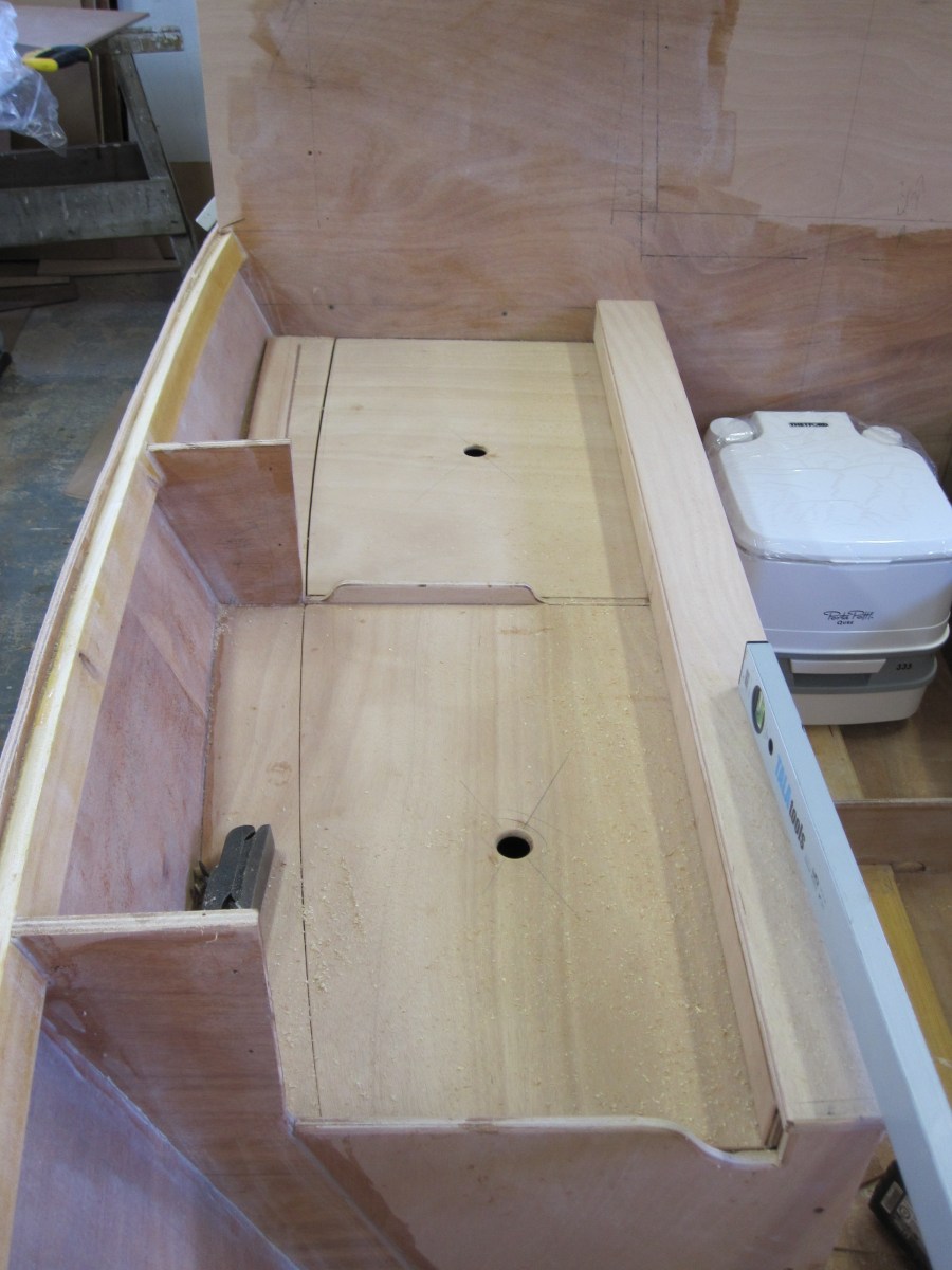 Interior fit out on cabin Sharpie.