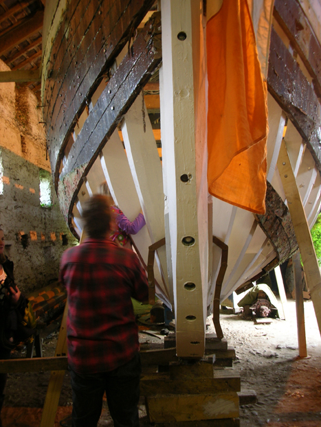 Frames of wooden boat Ilen taken by Tiernan Roe of Roeboats custom boat builders