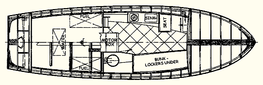 As you can see from the lines drawing your boat will have a beautifully flared and therefore dry riding bow that sweeps aft to a classic tumblehome stern that you are unlikely to find on a fiberglass boat (it won’t come out of a mould). She as a sharp entry and her long keel will make her track straight in rough water it also protects the rudder and propellor from damage and allows her to dry out level.