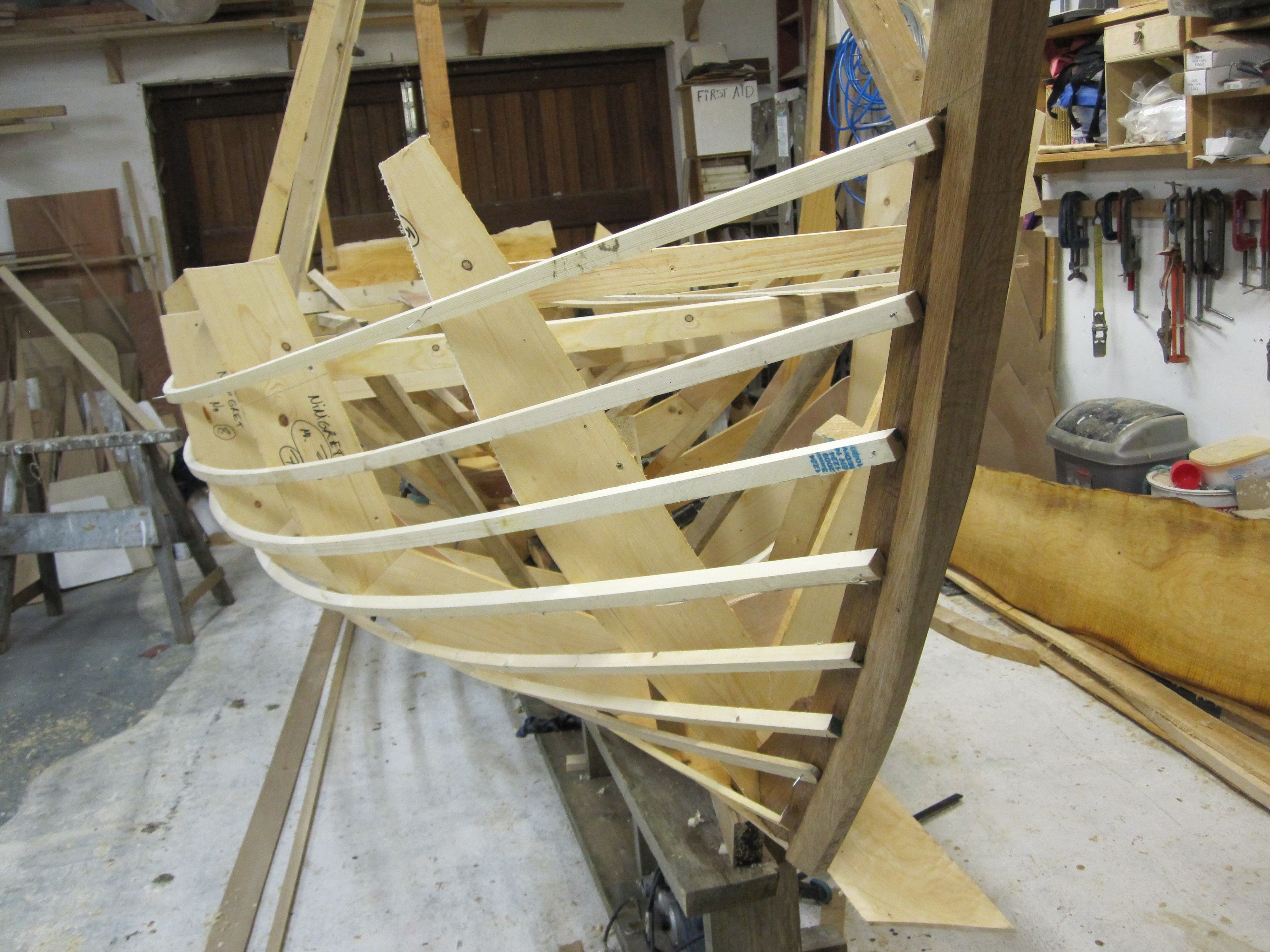 It’s mostly working out O.K. so far. I’m in the process of fitting the garboard planks at the moment and as I had suspected it’s fairly straightforward but of course there are a few things need re-jigging. Mostly in the keel bevel (the angle between the keel and the first (garboard) plank) and planking run (how the side of the boat is divided into planks of visually equal widths). The wood I’m using is turning out to be all that research had suggested it would be. Stable, light, easily worked, flexible, resistant to splitting, it should also prove to be durable and when you apply linseed oil it looks good too. Everything you would want in a boatbuilding wood.