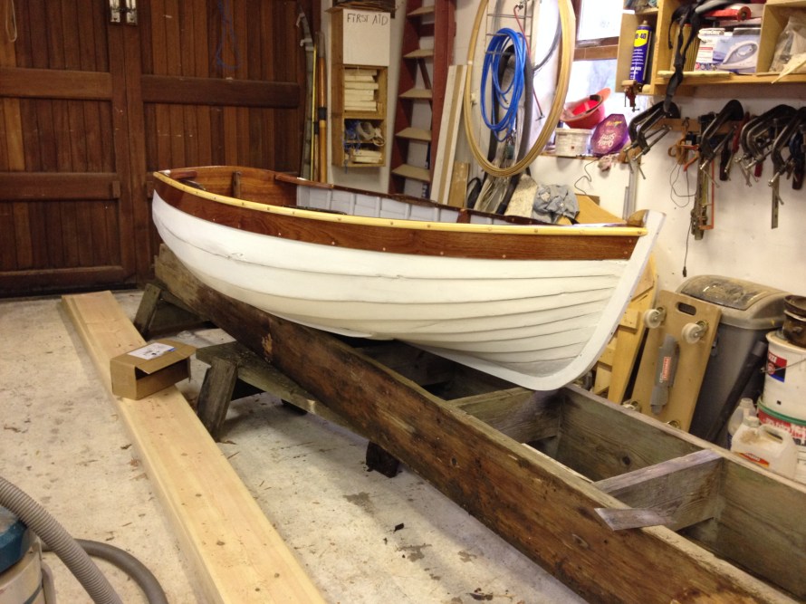 Built by the owners grandfather for his son, aged 6, to learn to row. Came to me after decades of use as a yacht tender, it needed pretty much a complete rebuild.